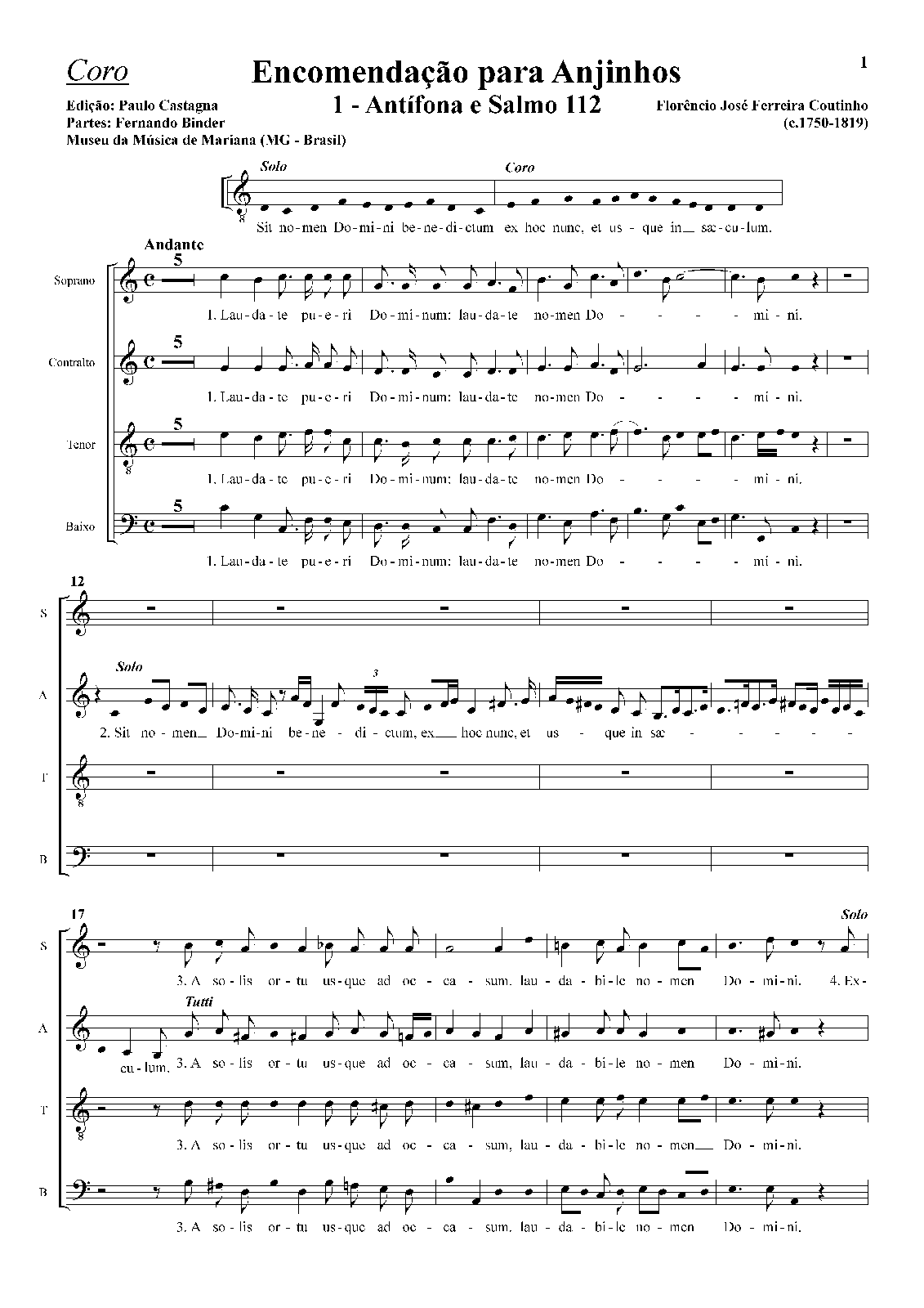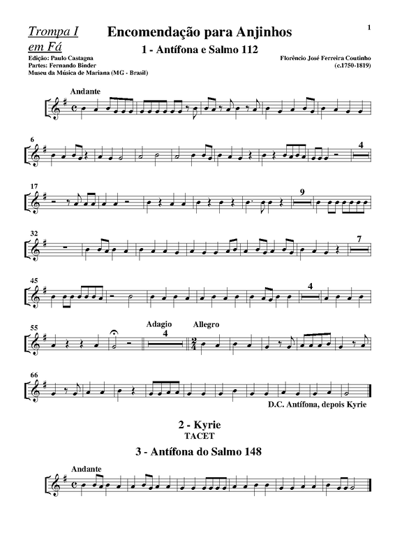 | Instrumentation | Chorus: Sopranos, Altos, Tenors and Basses Orchestra: Horns I and II, Violins I and II and Basses. |