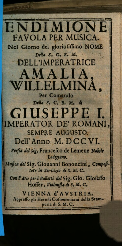| First Performance. | 1706-07-06 in Vienna, Belfonte Palace |