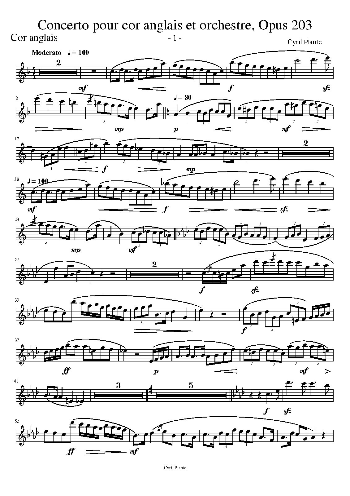 | Instrumentation | Solo: English horn Orchestra: flute, clarinet (in B♭), bass clarinet (in B♭), 2 bassoons, 2 horns (in F), trumpet (in B♭), trombone, bass trombone, tuba, timpani, triangle, cymbals, harp, strings |