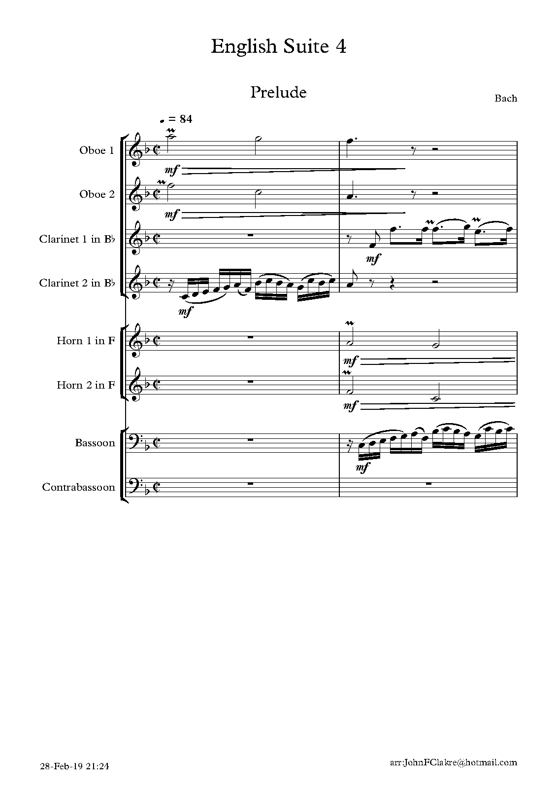 For 2 Oboes, 2 Clarinets, Bassoon, Contrabassoon and 2 Horns (Clarke)