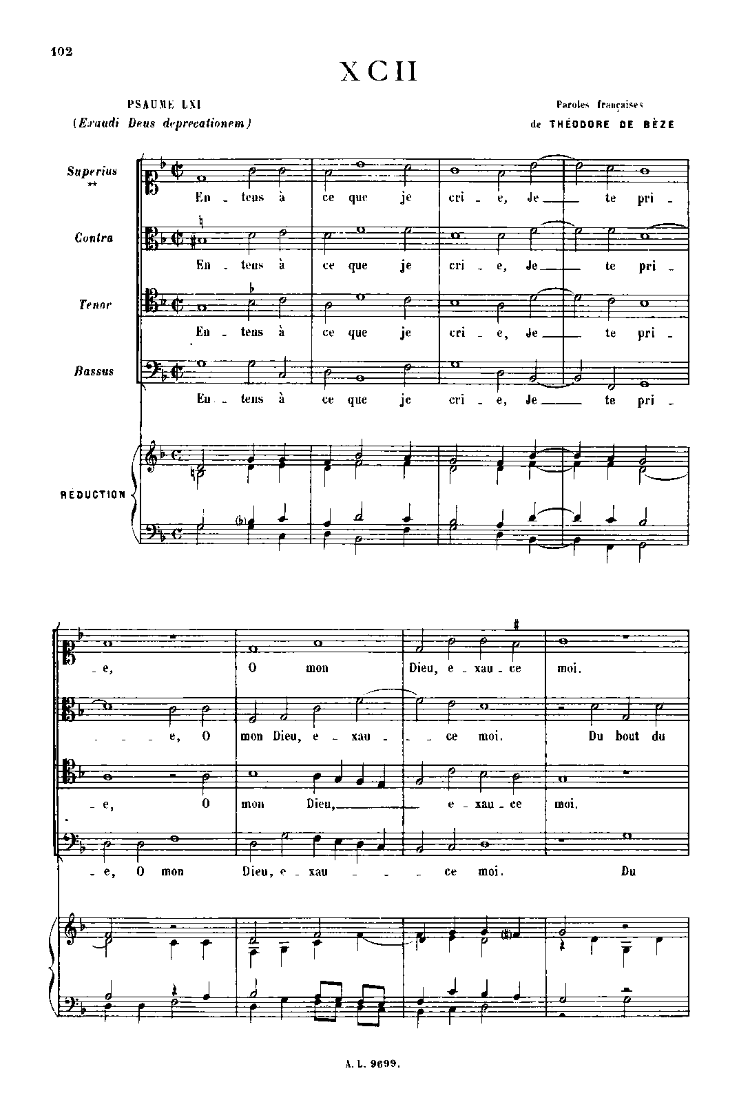 | First Publication. | 1568 in 150 Pseaumes de David (No.92) |