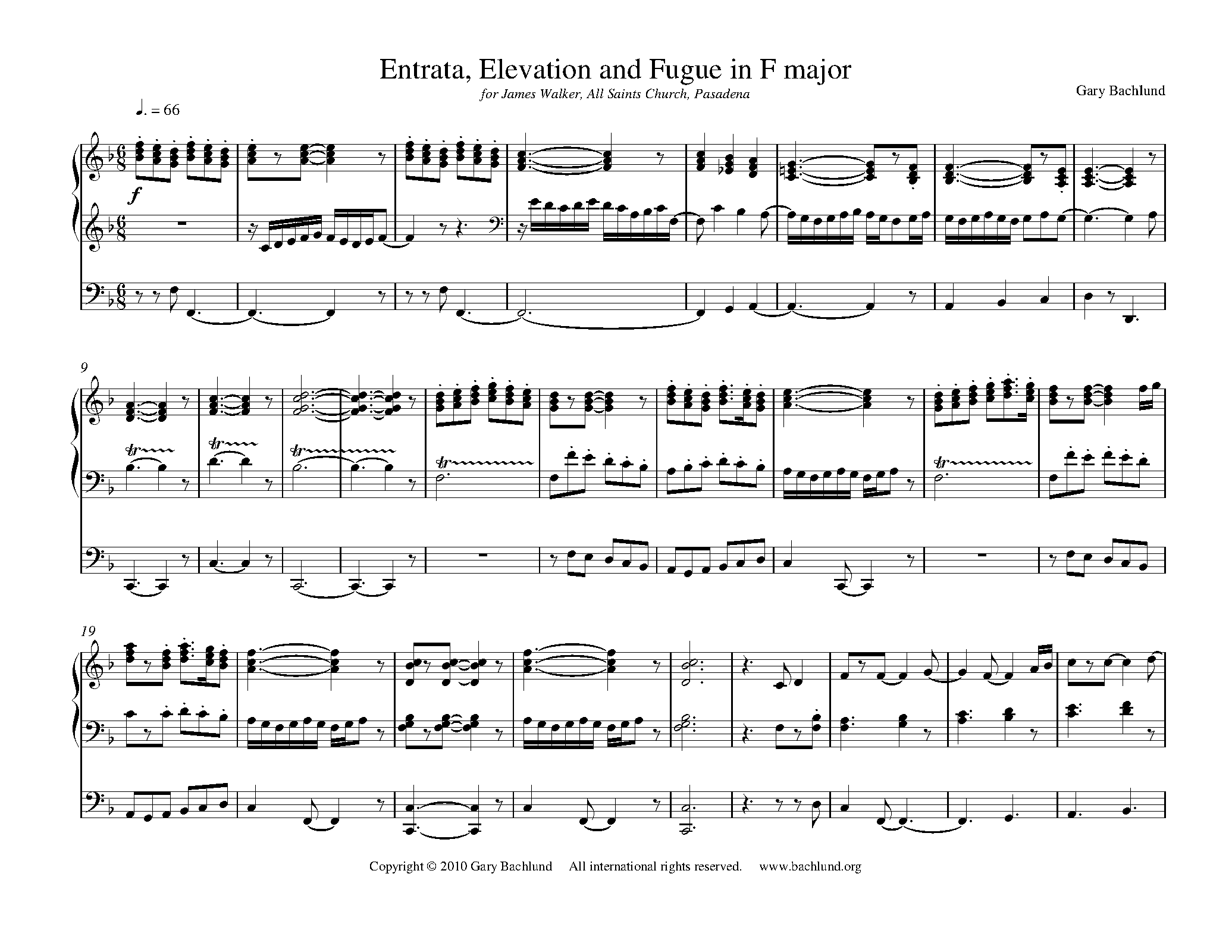 | Work Title | Entrata, Elevation and Fugue in F major |