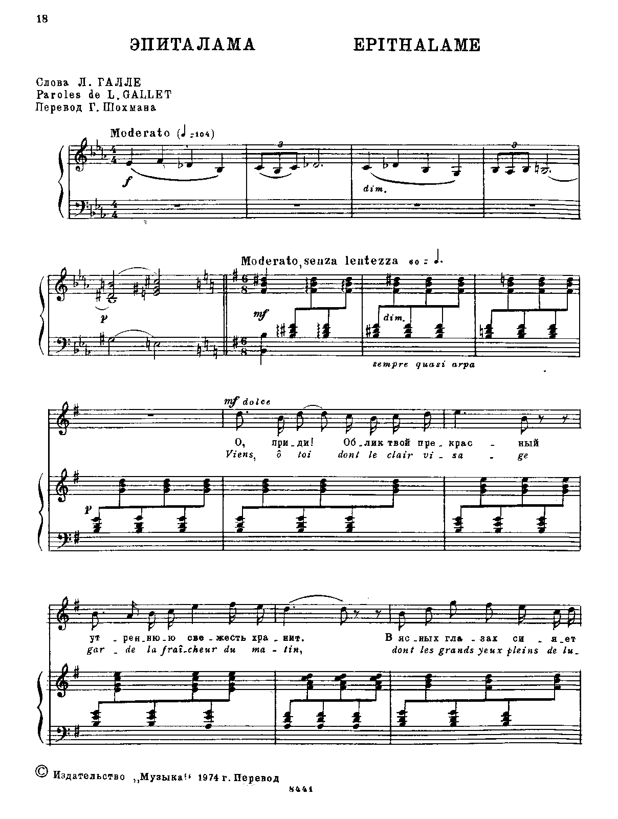 | Genre Categories | Epithalamia; Wedding music; For voice, piano; |
