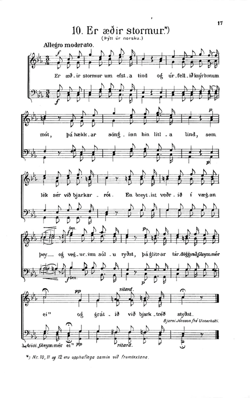 | Librettist | Bjarni Jónsson (from Unnarholti, 1872–1948), after a Norwegian poet |