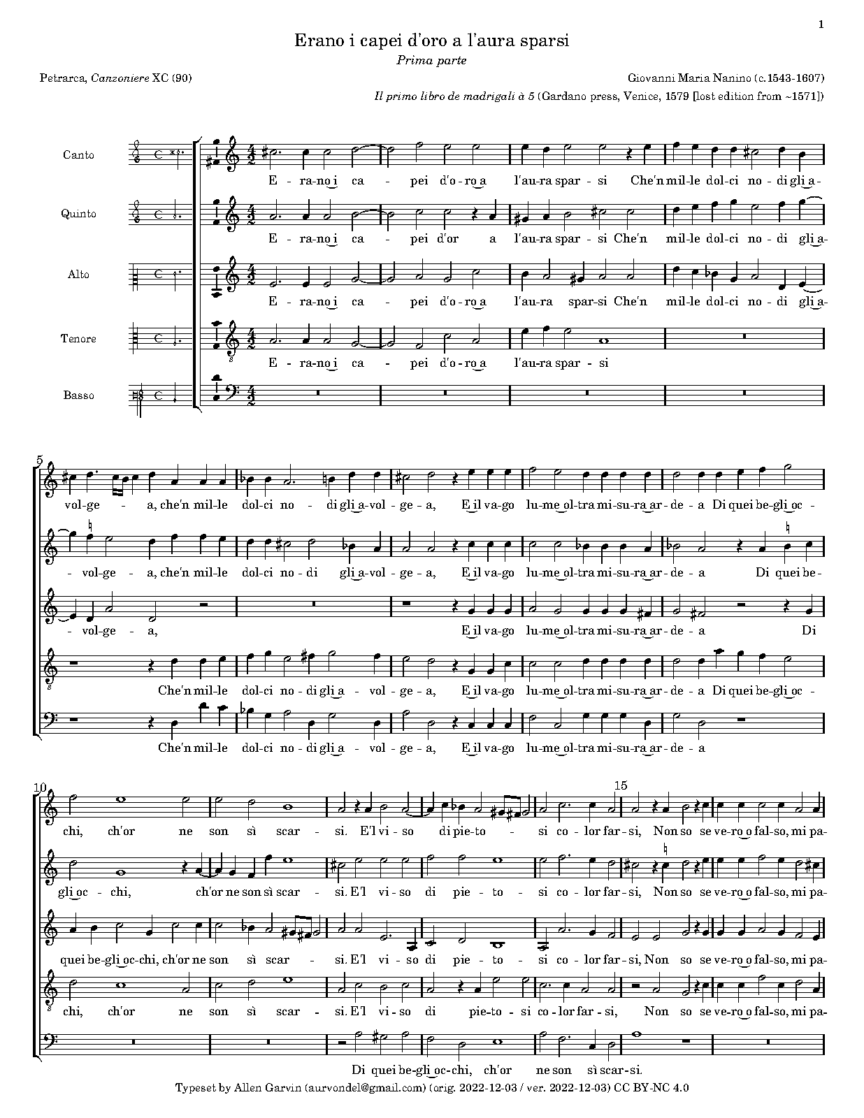 Erano capei d'oro (Nanino, Giovanni Maria)