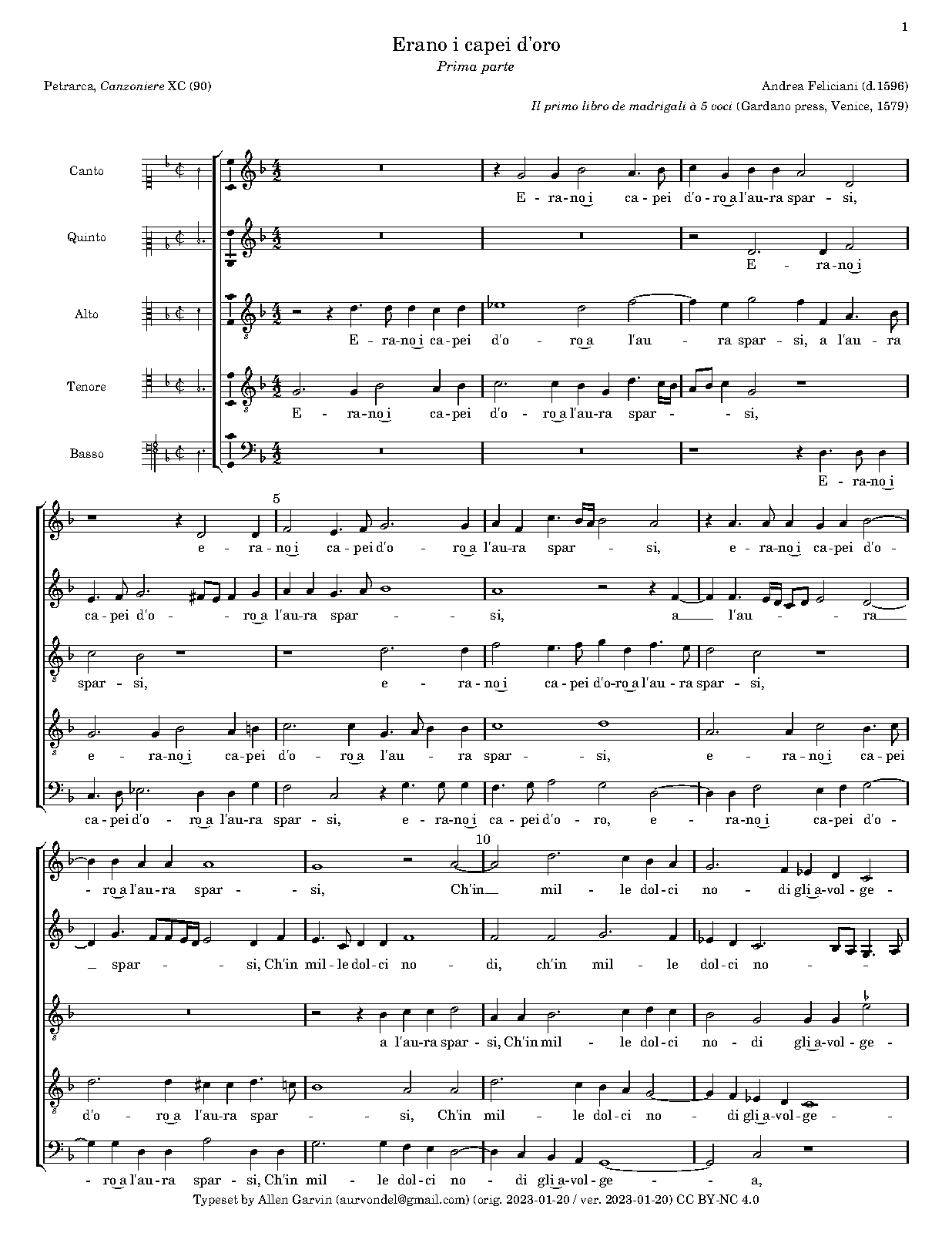 | First Publication | 1579 in Il primo libro de madrigali à 5 voci (Venice: Gardano press) |
