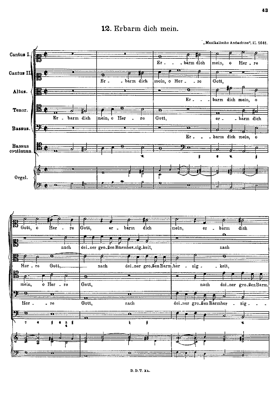 Source - Denkmäler deutscher Tonkunst, 1. Folge; 40 Bd. (1910) in modernen Schlüsseln, minimale Eingriffe in den Notentext