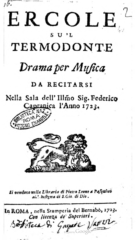 First Performance. 1723-01-23 in Rome, Teatro Capranica
