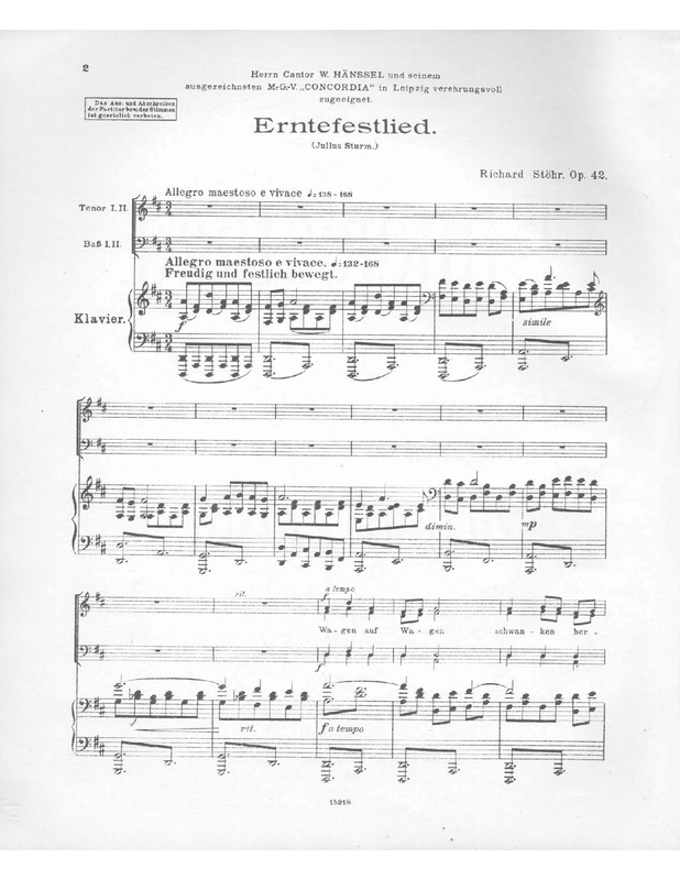 | Genre Categories | Lieder; Songs; For male chorus, orchestra; |