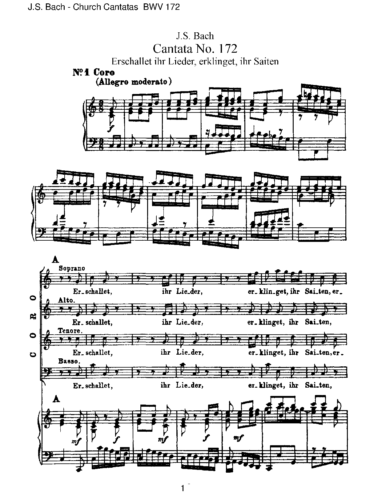 Name Translations Erschallet, ihr Lieder, erklinget, ihr Saiten!; Erschallet, ihr Lieder, erklinget, ihr Saiten! BWV 172; Erschallet, ihr Lieder, erklinget, ihr Saiten; Erschallet; Erschallet, ihr Lieder, erklinget, ihr Saiten, רי"ב 172; Erschallet, ihr Lieder, erklinget, ihr Saiten!, BWV 172