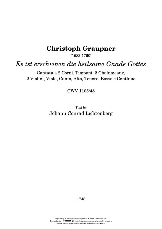 | Work Title | Es ist erschienen die heilsame Gnade, GWV 1105/48 |