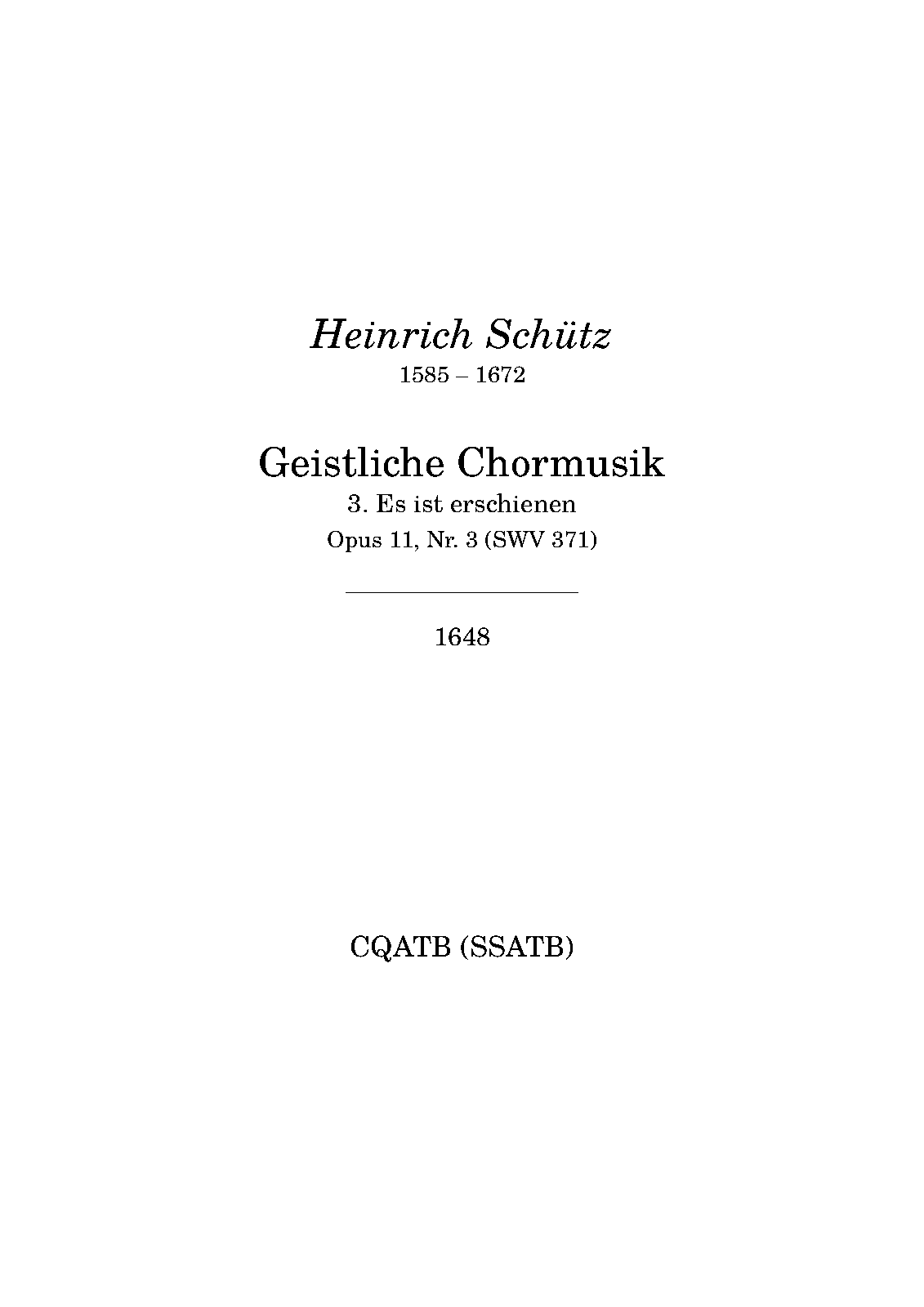 | Opus/Catalogue NumberOp./Cat. No. | SWV 371 ; Op.11 No.3 |