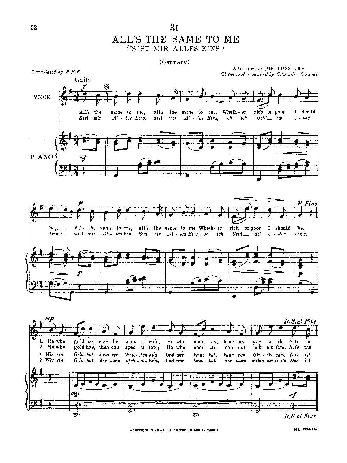 | Genre Categories | Songs; For voice, piano; For voices with keyboard; |