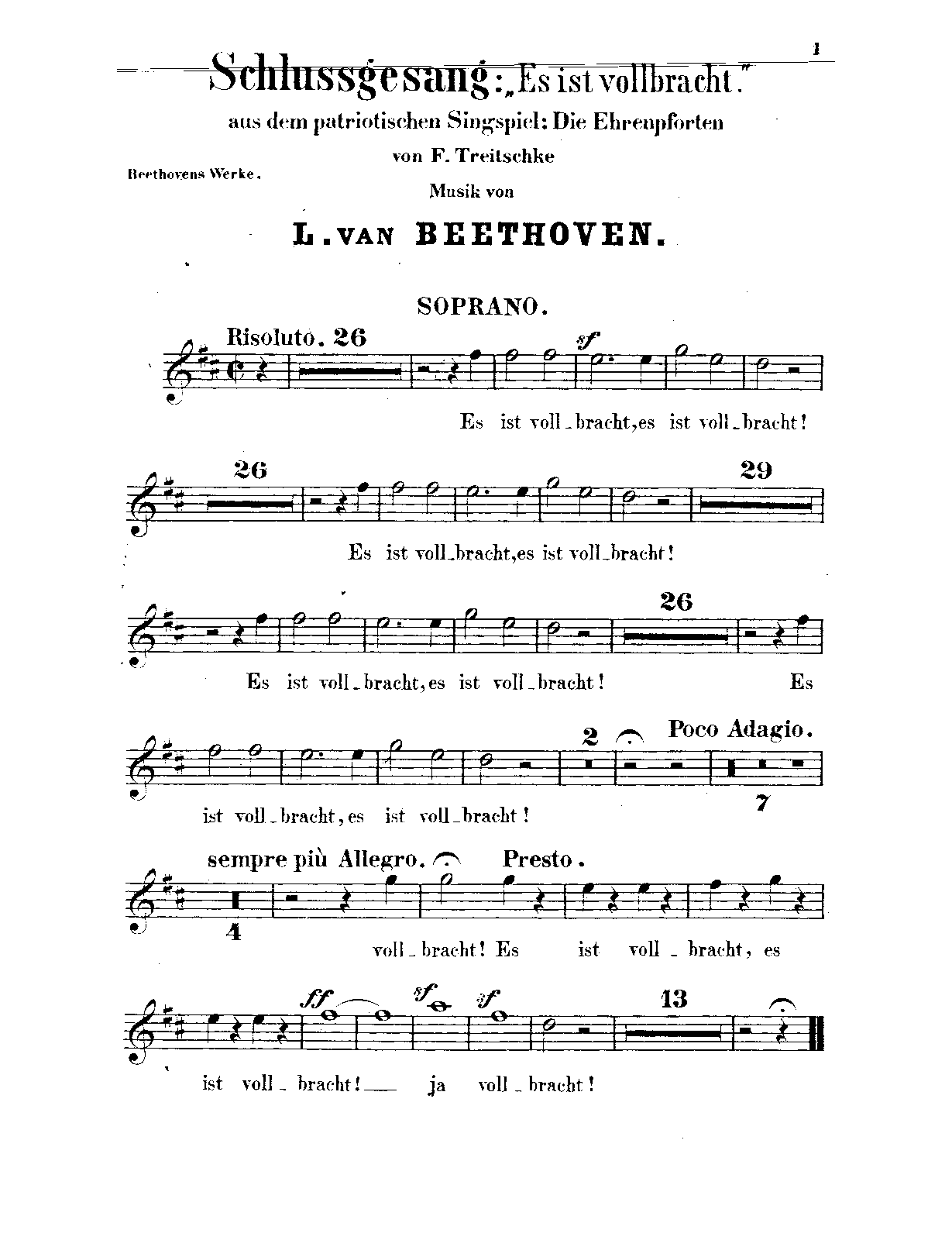 | Extra Information | *Full score first issued in 1864. Composed as a finale/final chorus for the singspiel Die Ehrenpforten honouring the second seizure of Paris in 1814. After this surrender, Napoleon went into exile in Elba. |