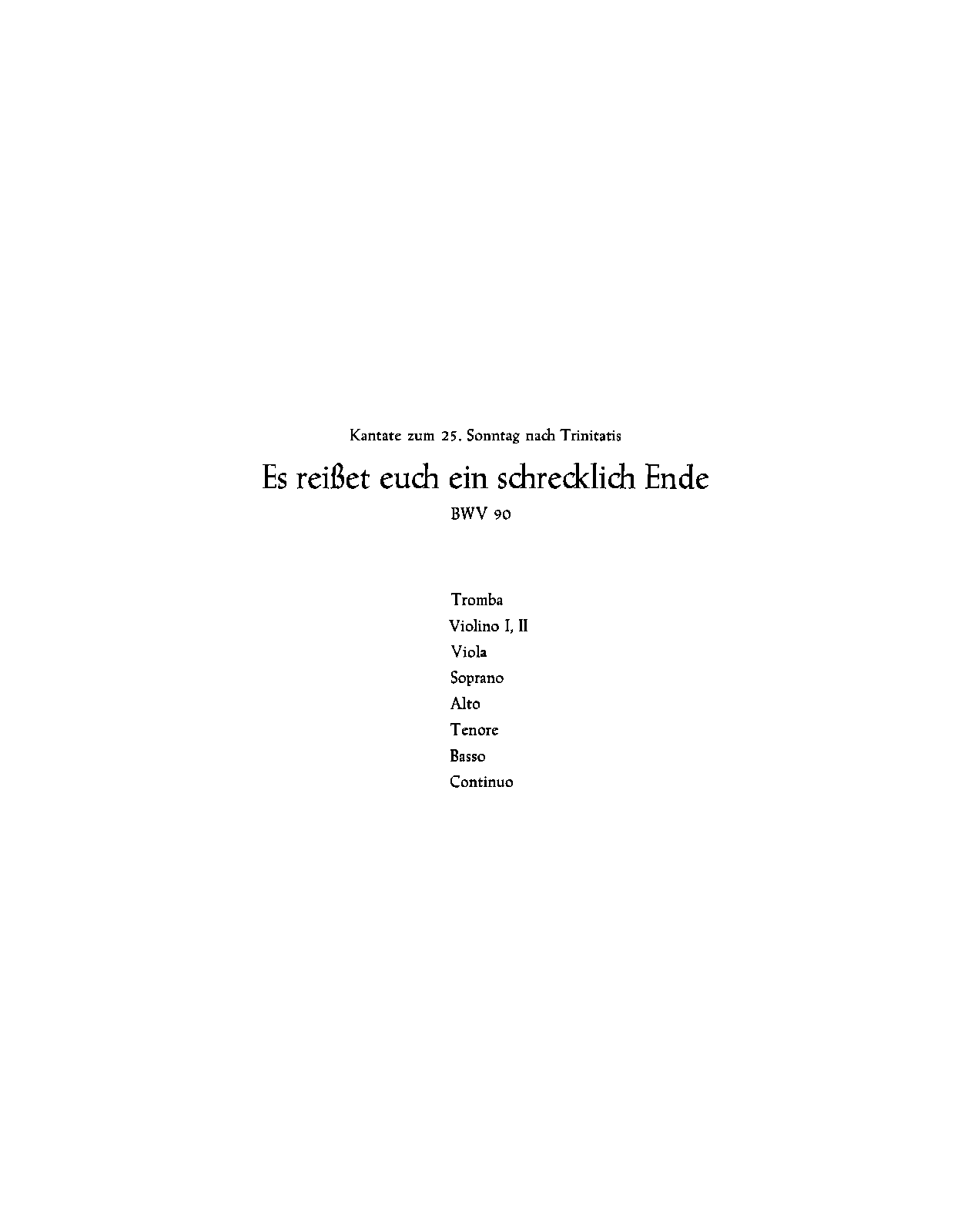 Name Aliases Bach, Johann Sebastian, 1685-1750. Es reisset euch ein schrecklich Ende