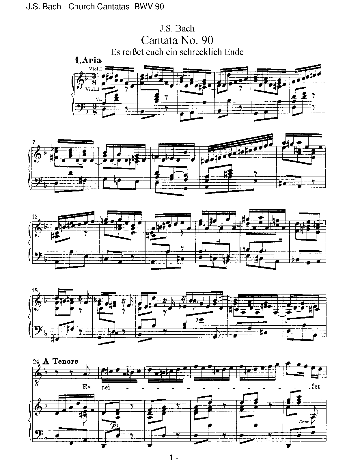 1. Aria (tenor): Es reißet euch ein schrecklich Ende (D minor)