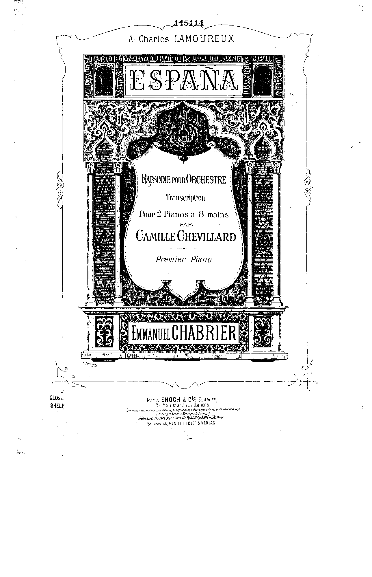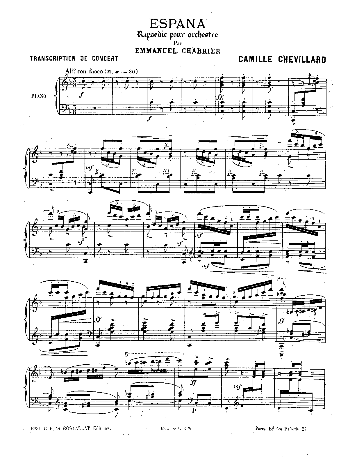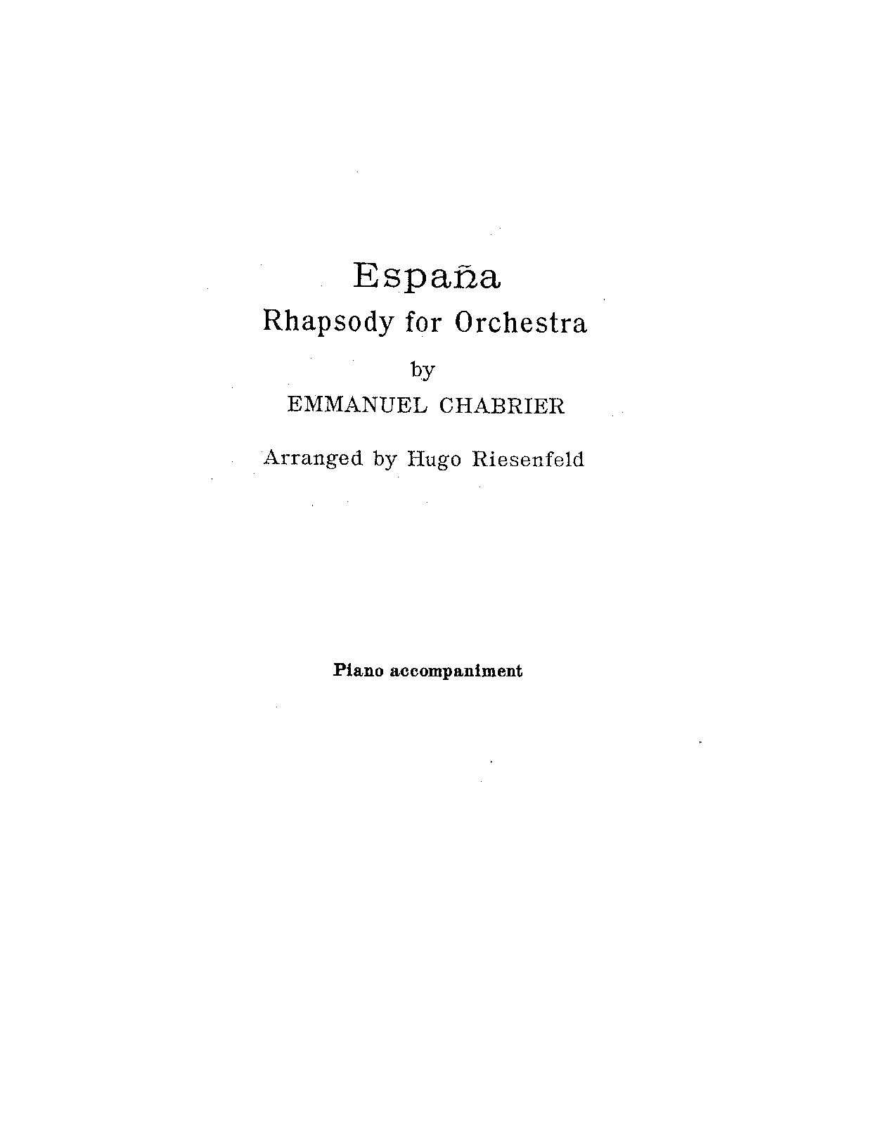 | Name Translations | España, rhapsody for orchestra; スペイン; España (Chabrier); 西班牙狂想曲; Испания (Шабрие) |