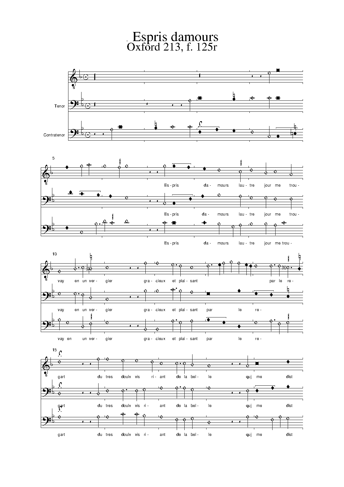 | Work Title | Espris d'amours l'autre jour me trouvay |