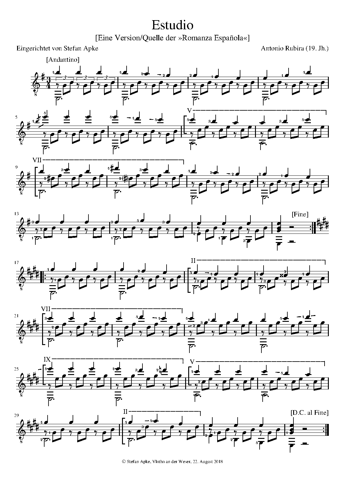 Dos estudios para Guitarra por D. Antonio Rubira