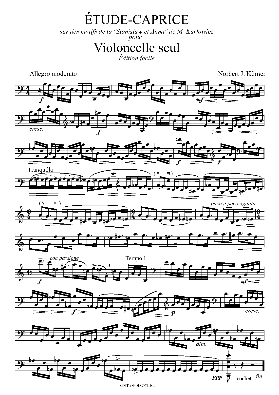 | Alternative. Title | Ètude-Caprice des motifs de la "Stanislaw et Anna" de M. Karlowicz pour Violoncelle |