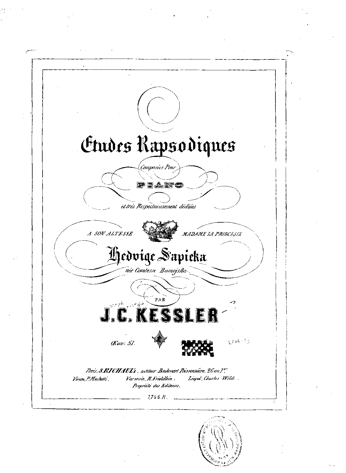 Also published by Wild of Lemberg in 1853. (Kessler also wrote a op.99 "Elegisch und Rhapsodisch. Zwei Tonstücke." published ca.1872. Was fond of the adjective, like other composers.)