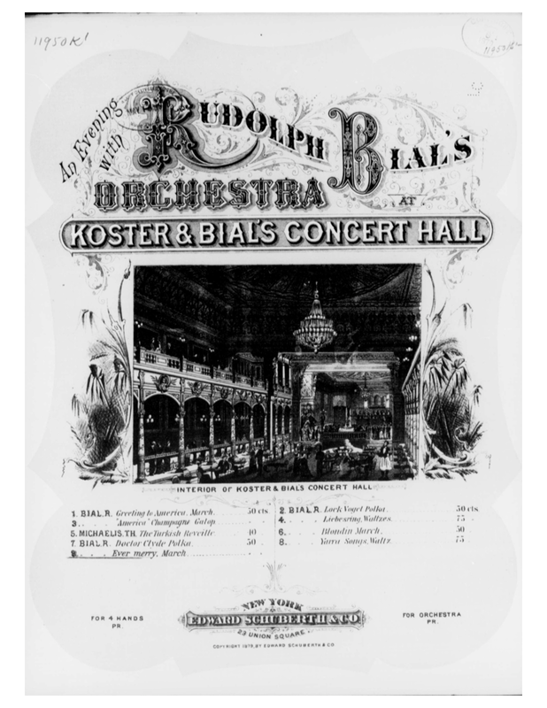 advertised in "An Evening with Rudolph Bial's Orchestra - Koster & Bial's Concert Hall", a Edward Schuberth & Co. series of piano works, but may be an arrangement of a work originally written for orchestra as suggested by the title (or the title may not be meant to be taken quite so literally). Some items in the series - the Liebes Ring Waltzes - are extracts from larger orchestral-vocal works (Liebesring is an operetta by Bial); so it's possible.