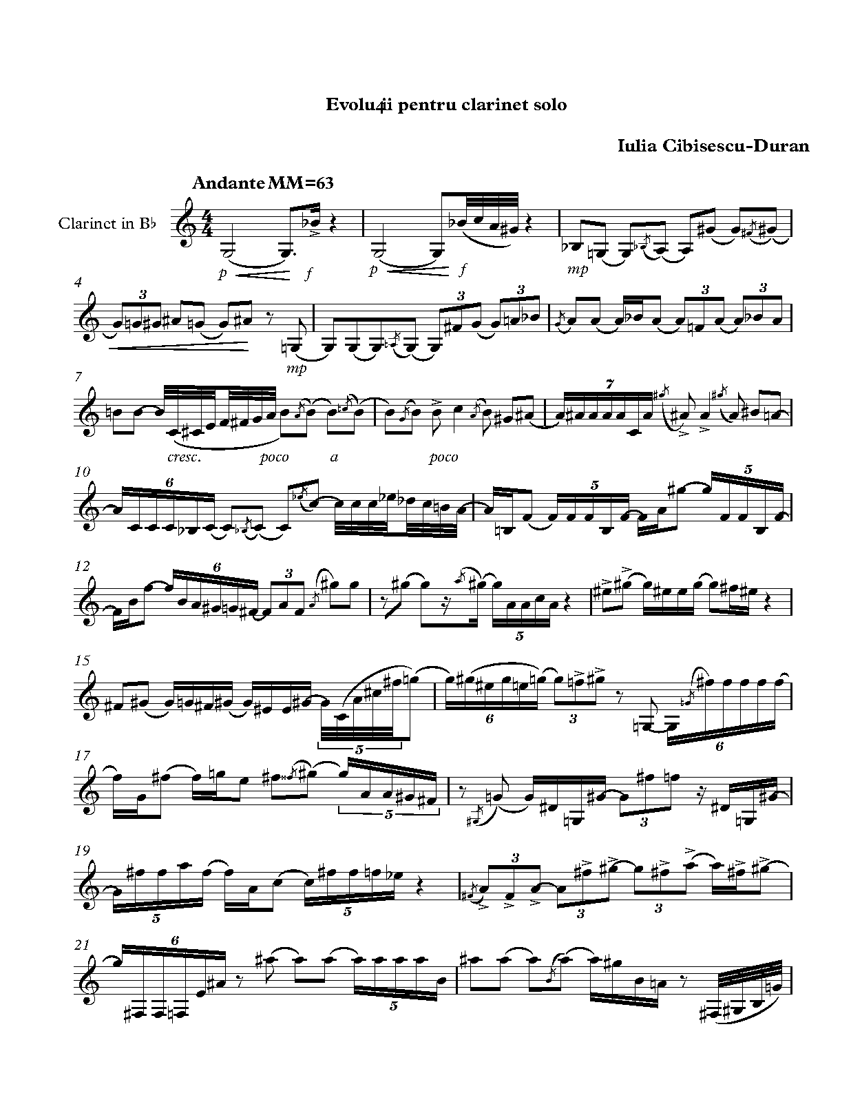 | Work Title | Evoluții for clarinetto solo |