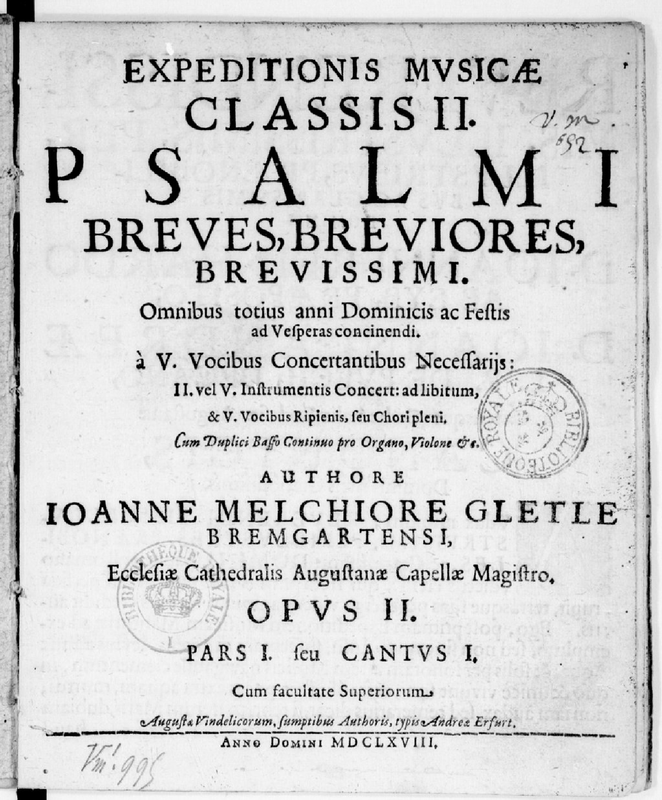 | Genre Categories | Psalms; Religious works; For 5 voices, mixed chorus, bassoon, 2 violins, 2 violas, continuo; |
