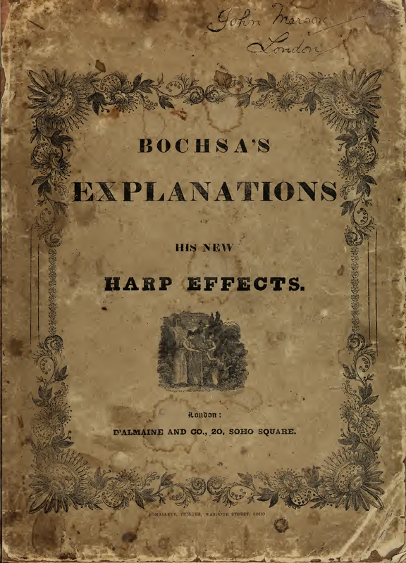| Alternative. Title | Bochsa's Explanations of his New Harp Effects and Passages, illustrated by Numerous Examples, Lithographic Plates &c. &c. and embellished with a striking likeness of the author. |