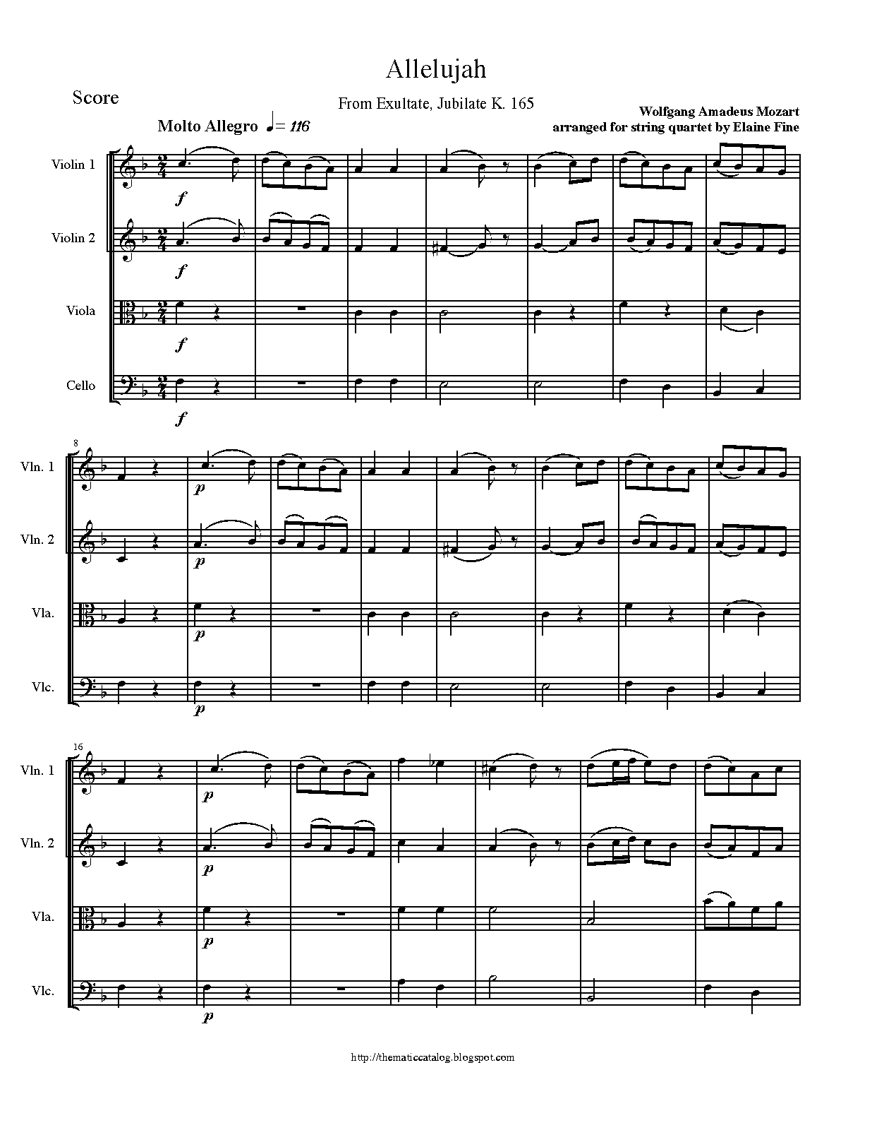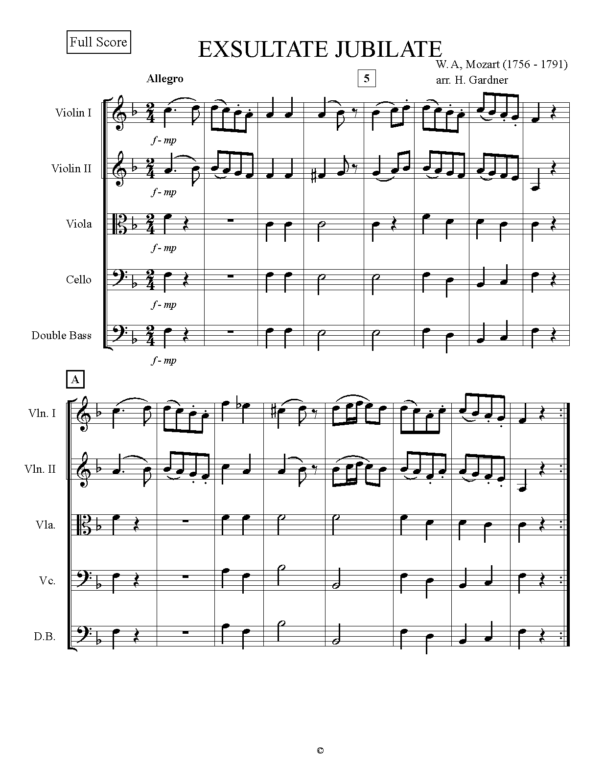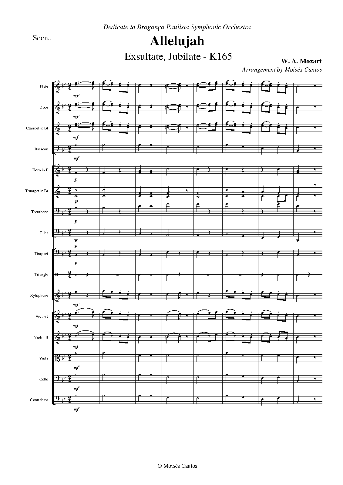 Misc. Notes Incipit of "Alleluja" from Mozart's "Exultate, jubilate" for Soprano solo and Woodwind Quintet