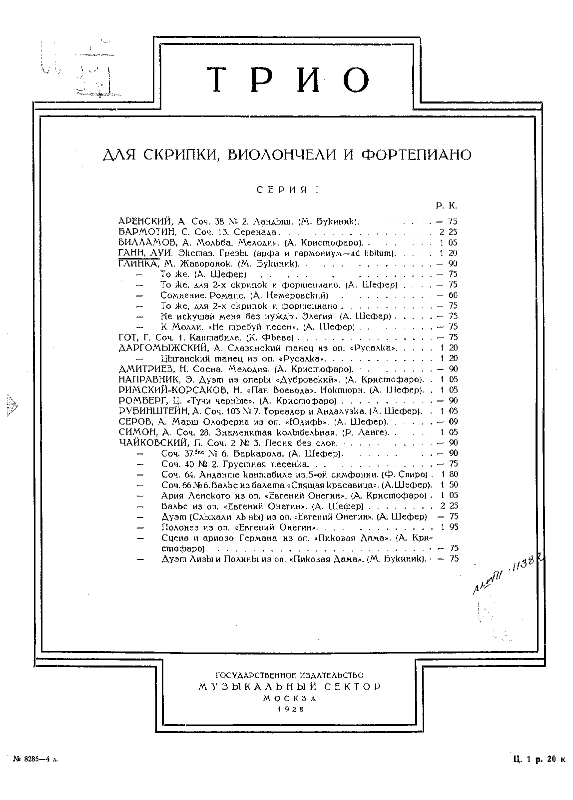 Moscow: Muzgiz, 1928. Plate M 8285 Г.