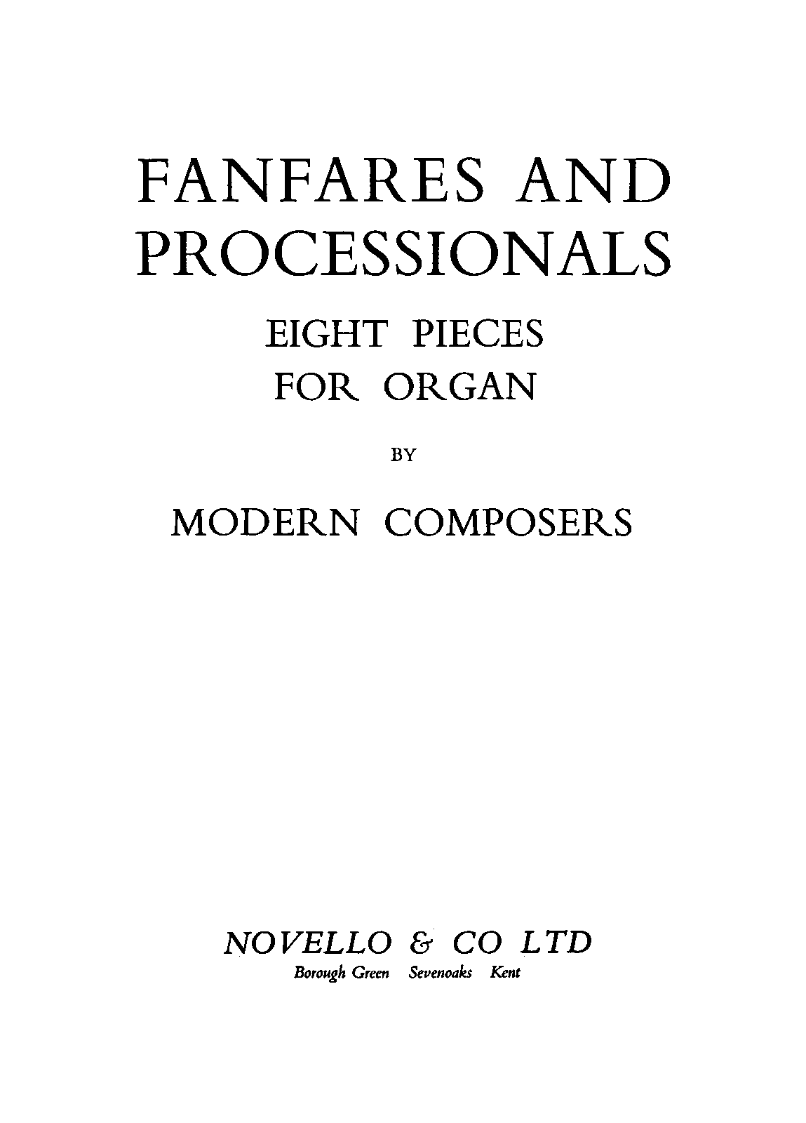 Publisher. Info. Fanfares and Processionals: Eight Pieces for Organ by Modern Composers