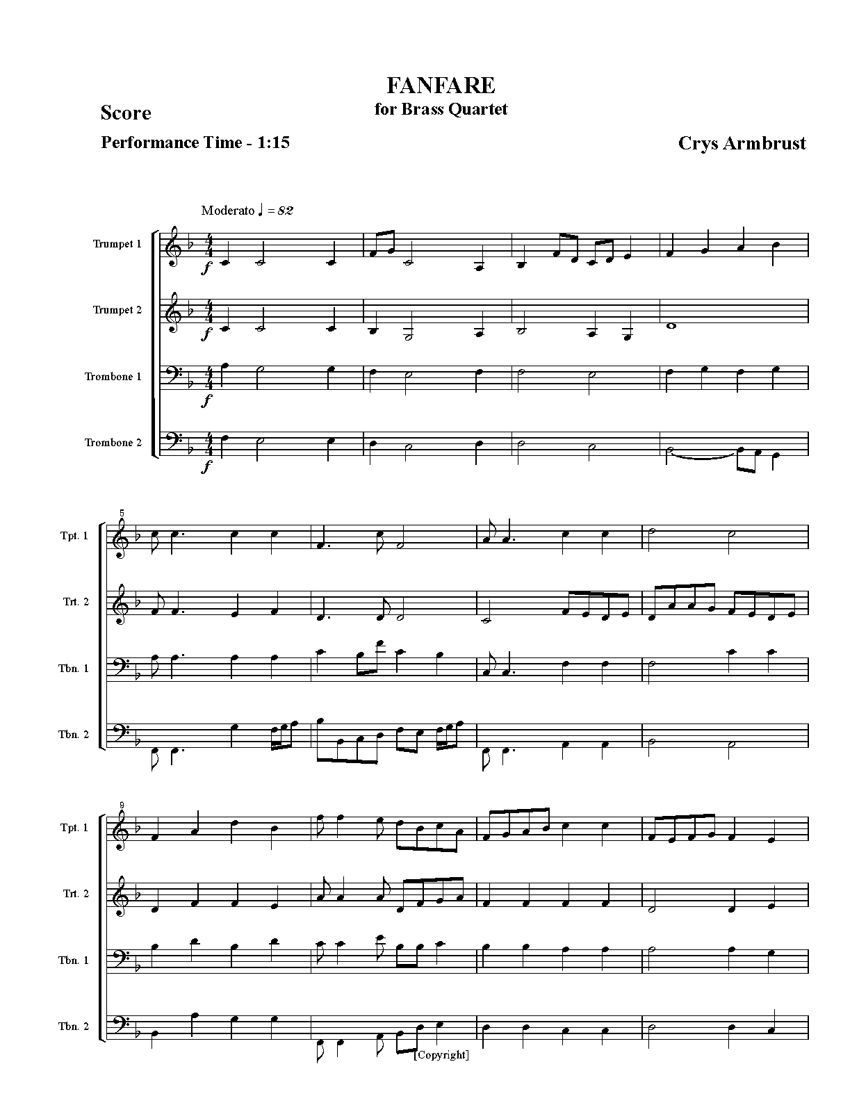 | Genre Categories | Fanfares; For 2 trumpets, 2 trombones; Scores featuring the trumpet; |