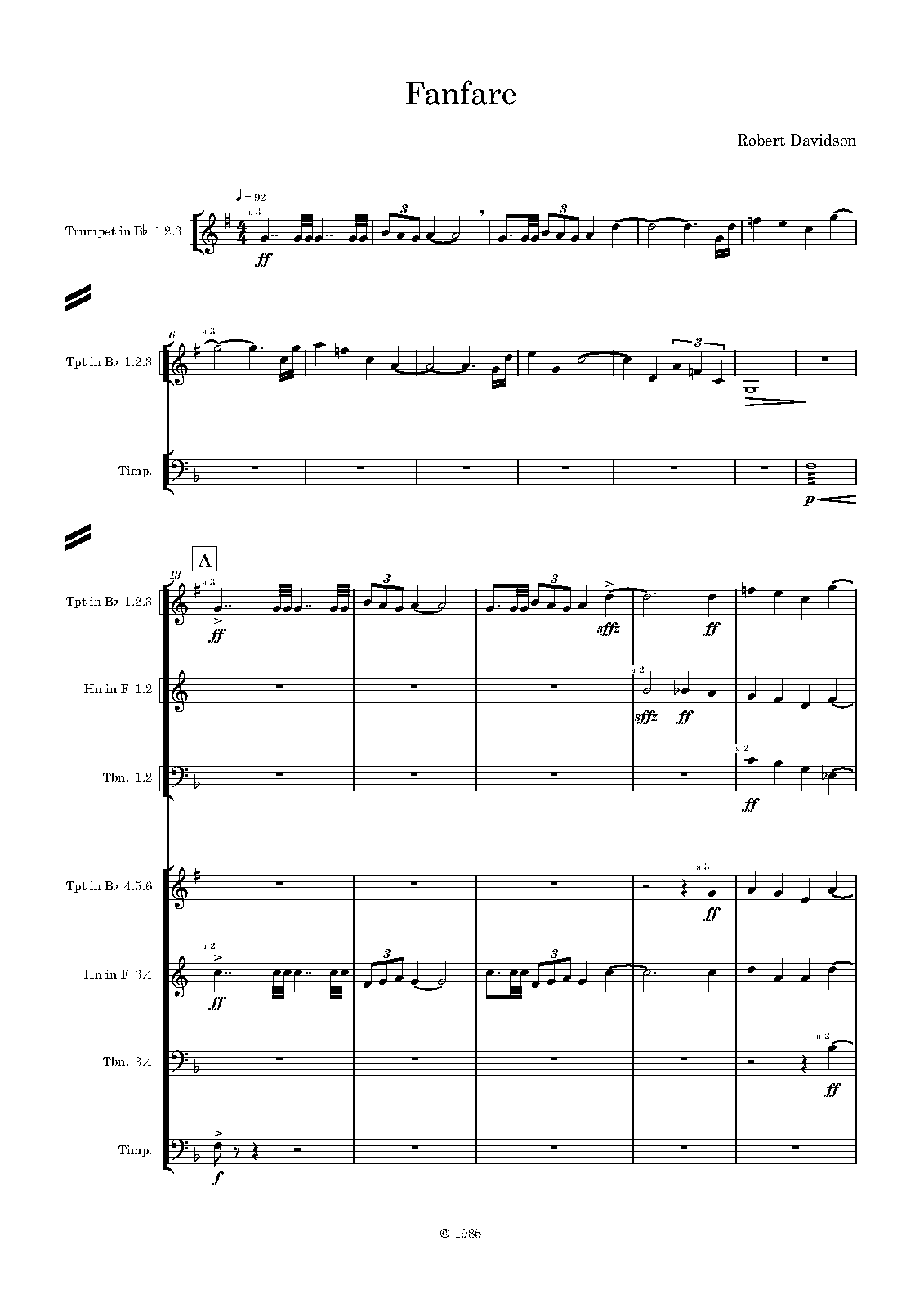 | Genre Categories | Fanfares; For 4 horns, 6 trumpets, 4 trombones, 2 bass trombones, 2 tubas, timpani; Scores featuring the horn; |