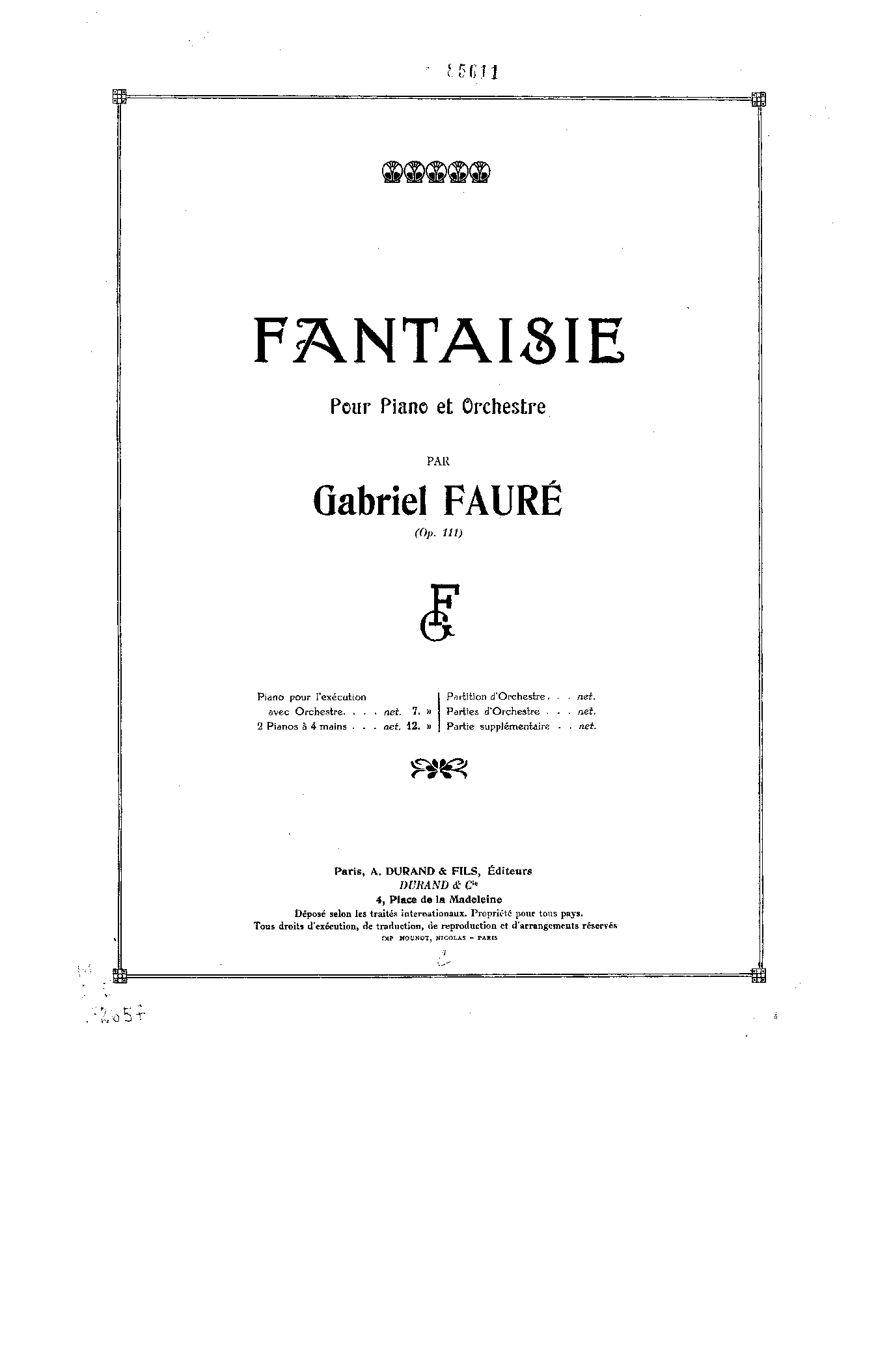 | Name Translations | Fantaisie pour piano et orchestre; Fantaisie für Klavier und Orchester; Fantaisie in G for piano and orchestra; ピアノと管弦楽のための幻想曲 ト長調 |