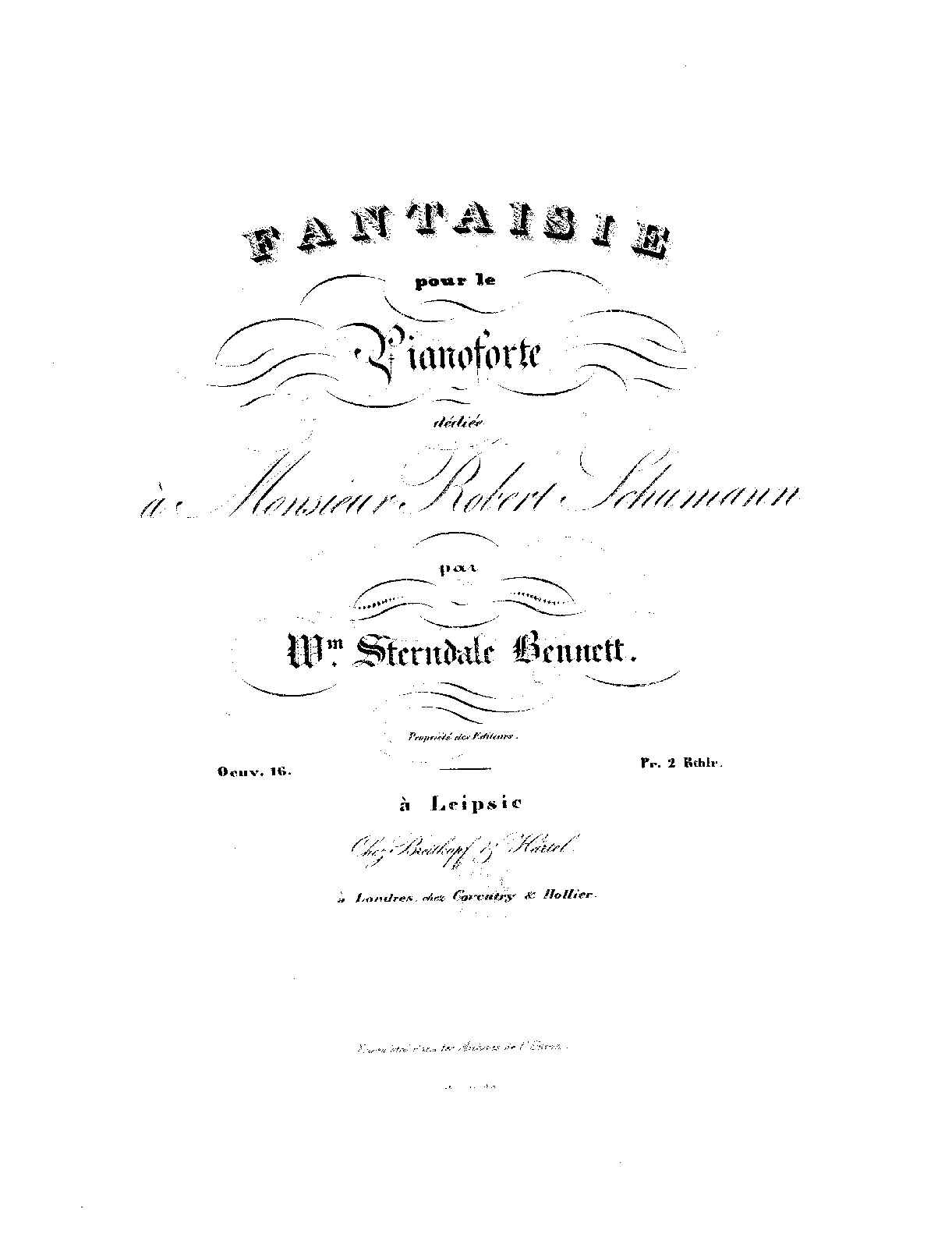 Schumann found the work 'ringing with lovely melodies as over-richly as a nest of nightingales', and reciprocated by dedicating his Etudes Symphoniques Op.13 to Bennett, also published in 1837.