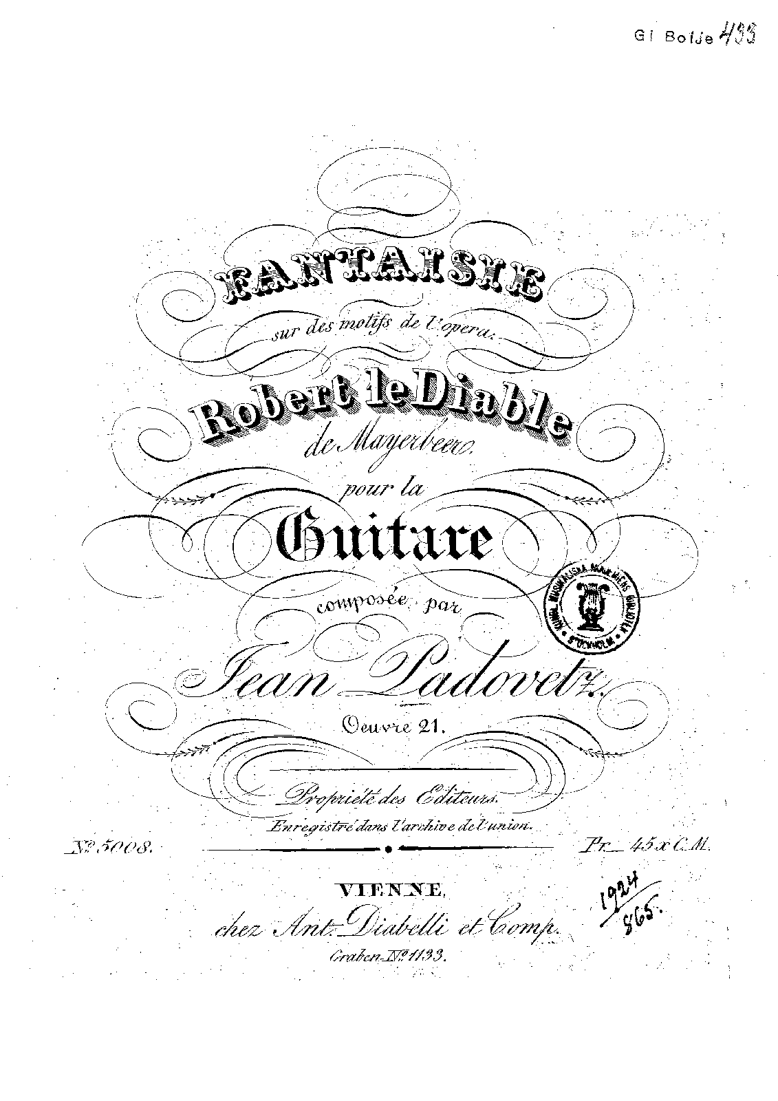 | Alternative. Title | Fantaisie sur des motifs de l'opera Robert le Diable de Mayerbeer pour la Guitare |