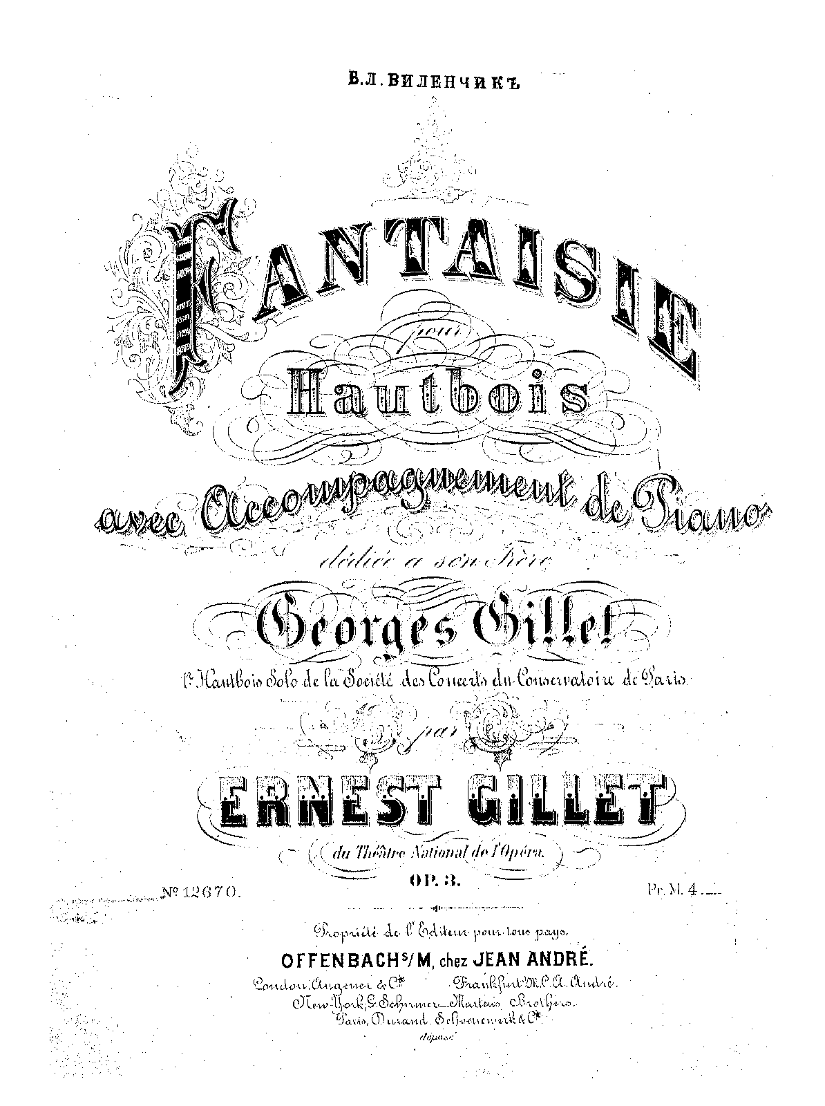 | Genre Categories | Fantasias; For oboe, piano; Scores featuring the oboe; |