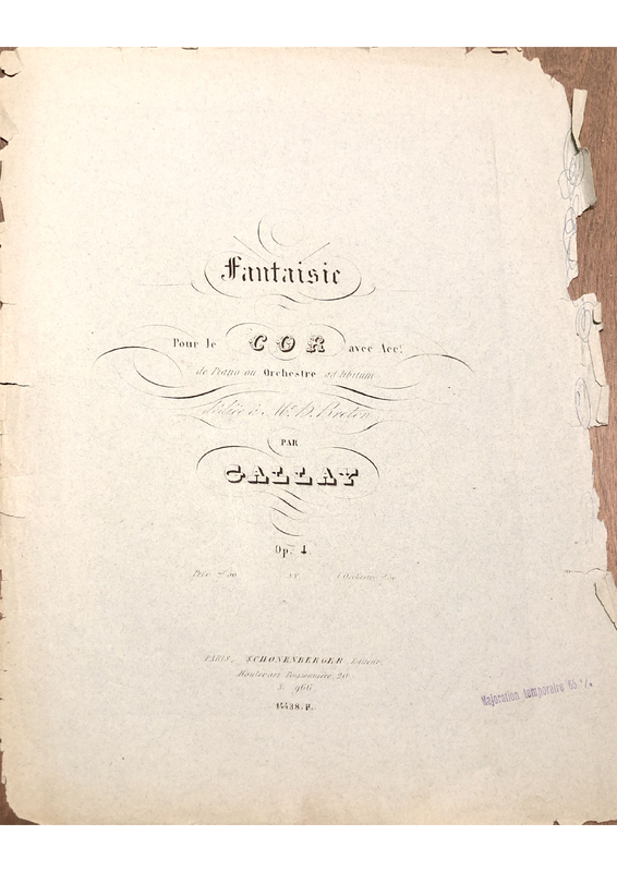 | Alternative. Title | Fantaisie pour le cor avec accompagnement de piano ou d'orchestre ad libitum |