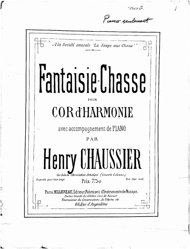 | Alternative. Title | Fantaisie-Chasse pour cor d'harmonie avec accompagnement de piano |