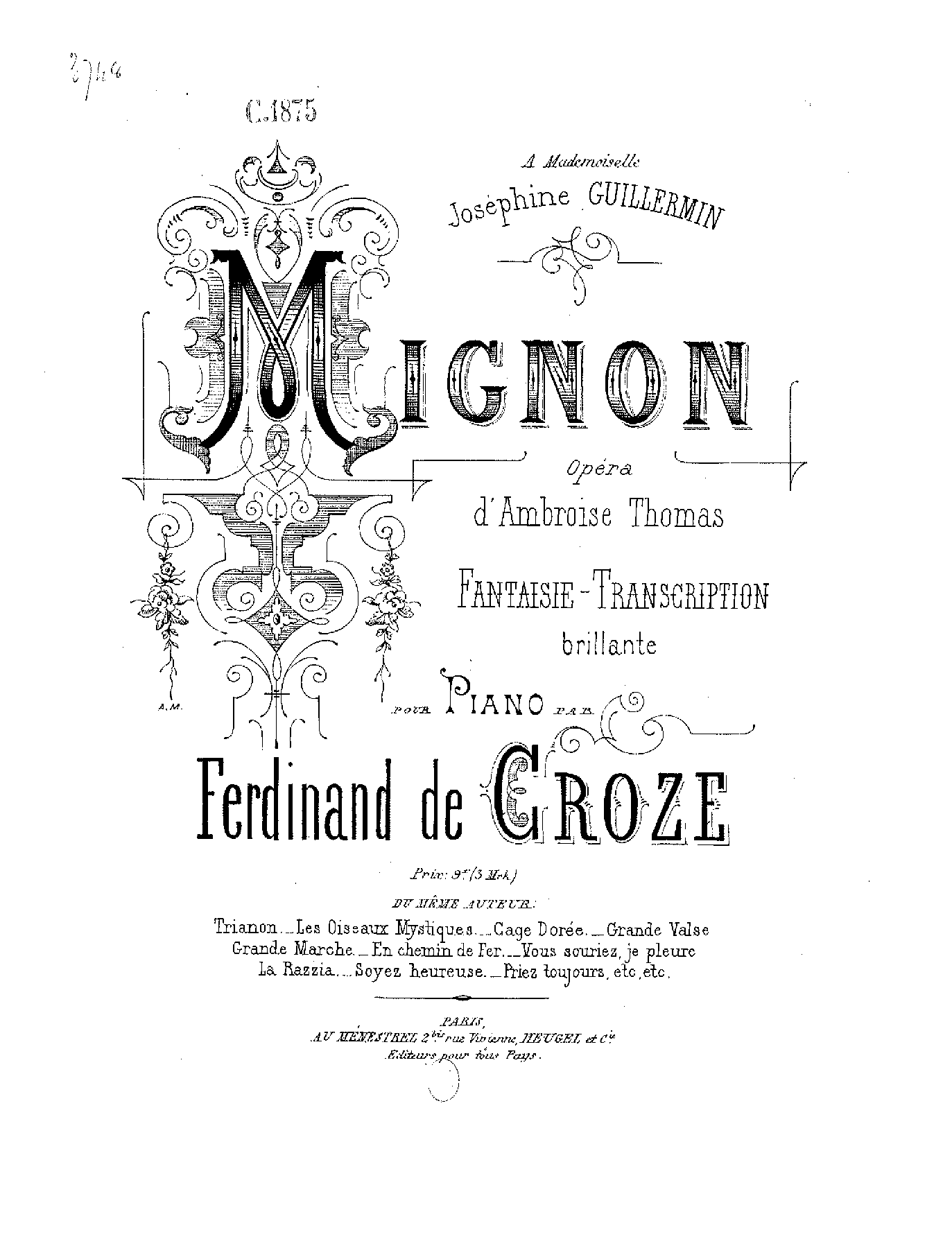Mignon. Opéra d'Ambroise Thomas. Fantaisie-transcription.