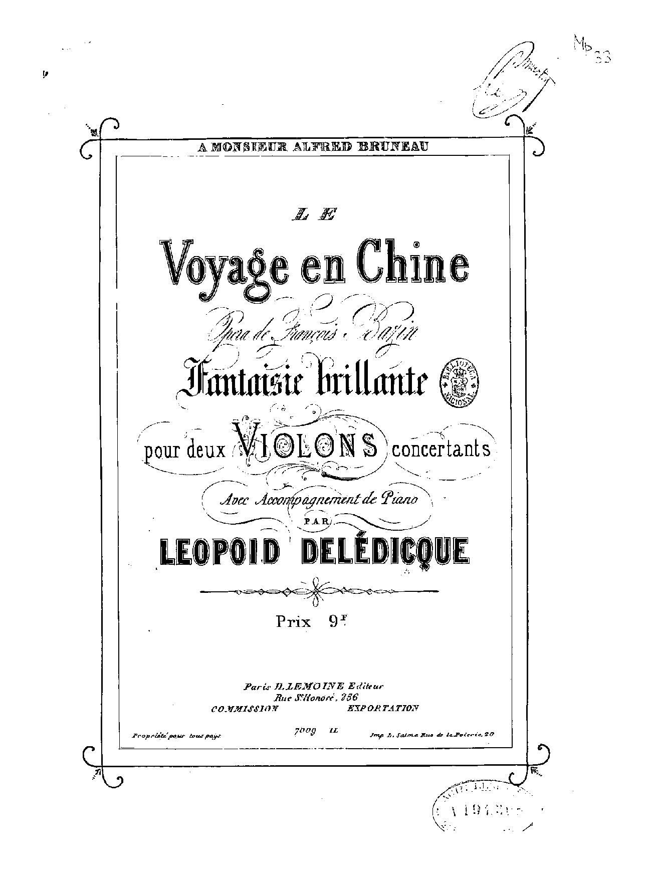 à Monsieur Alfred Bruneau (unlikely this refers to the composer, who was aged 11 at the time of publication)