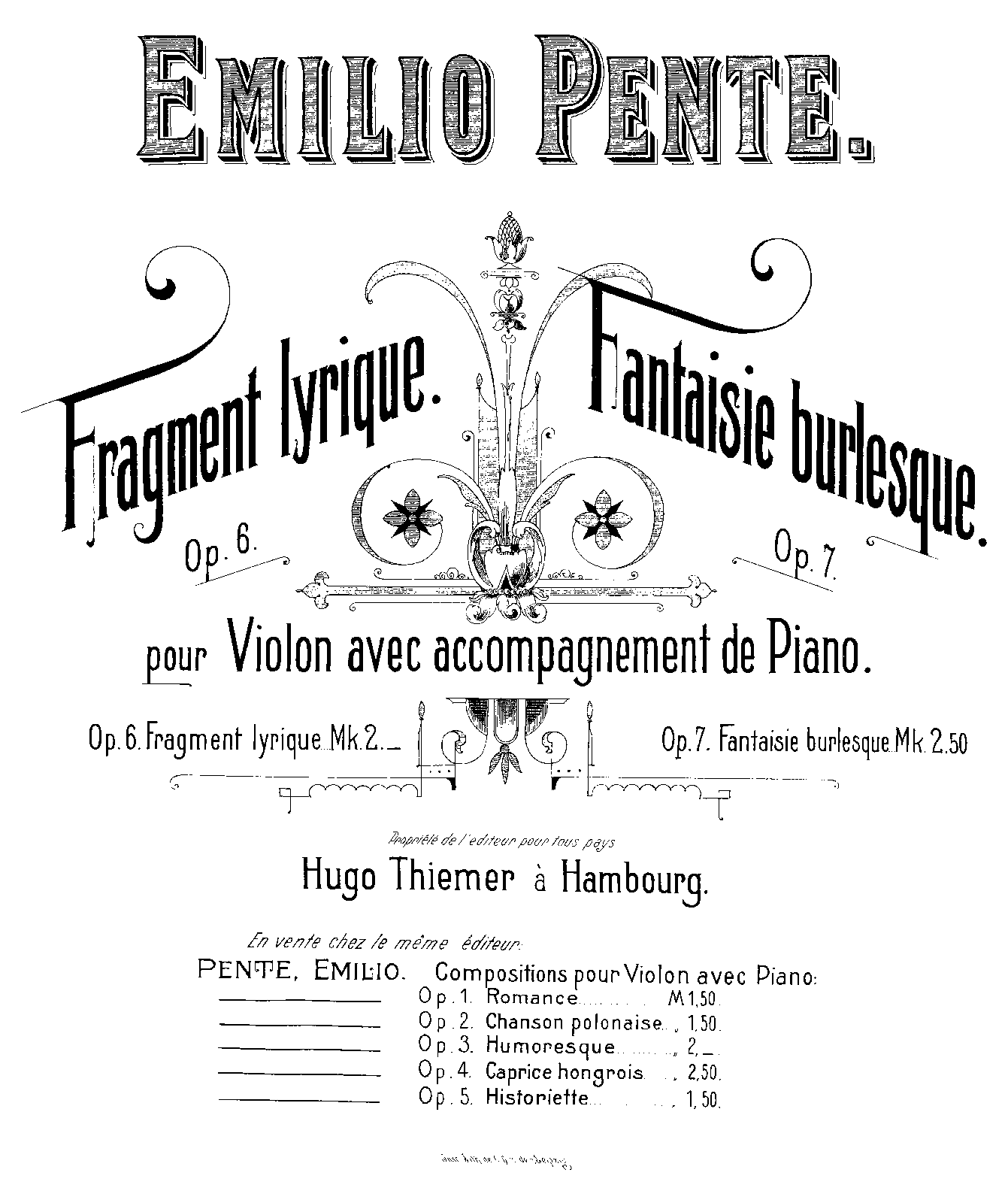| First Publication | 1898 – Hamburg: Hugo Thiemer |