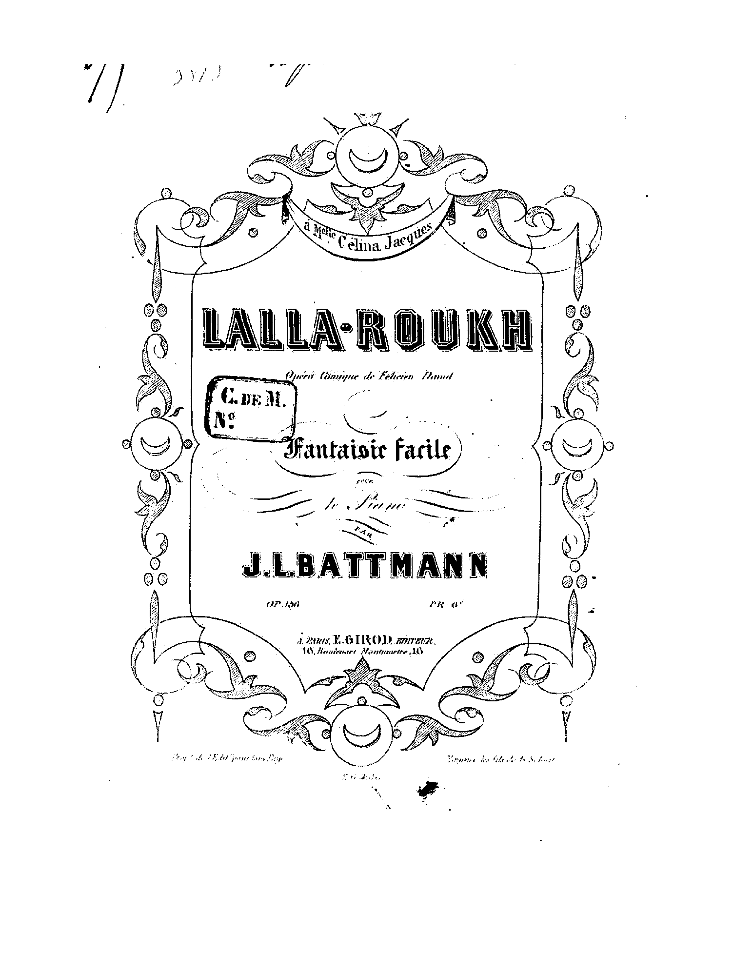 | Alternative. Title | Lalla Roukh. Opéra comique de Félicien David. Fantaisie facile. |