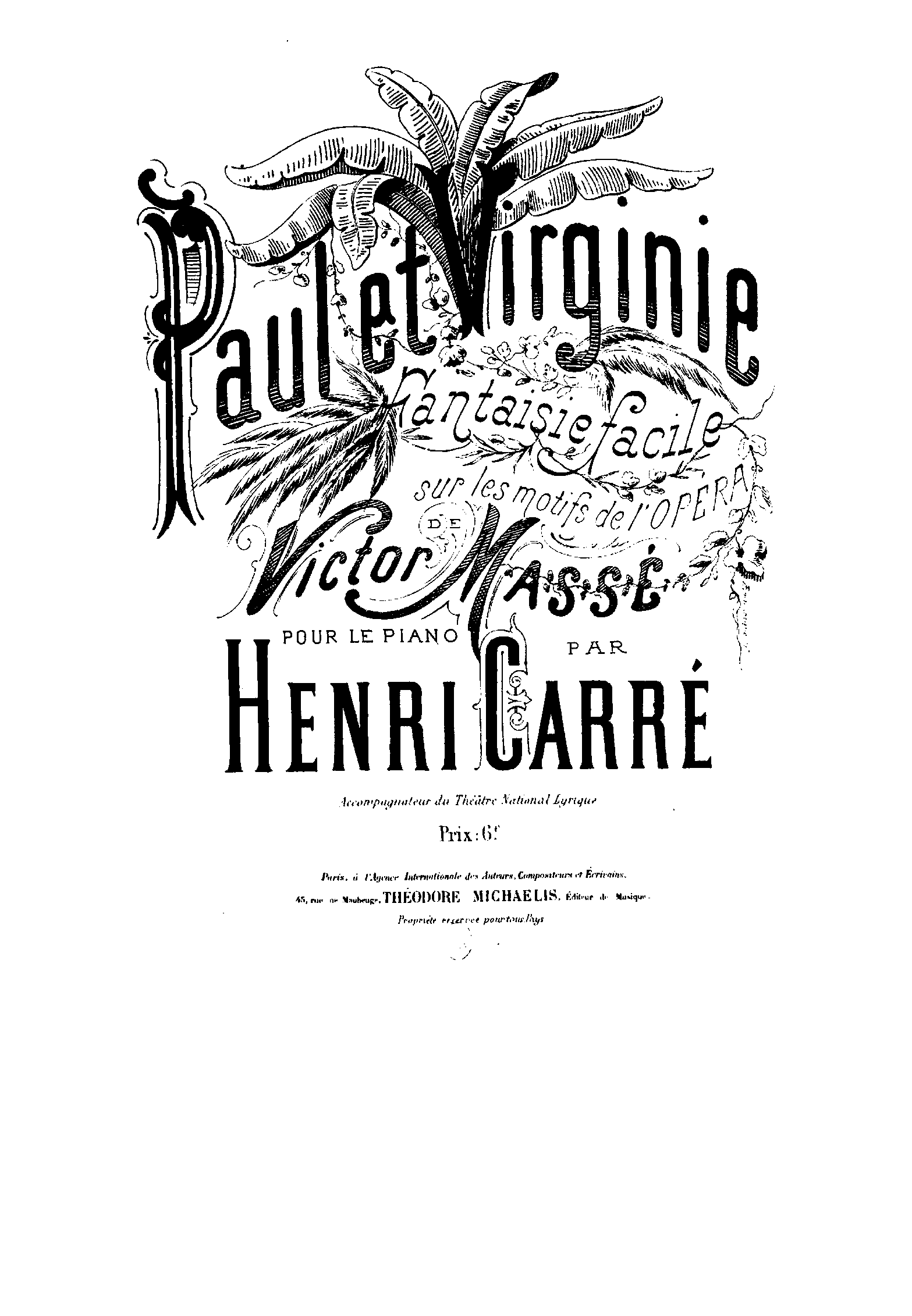 | Alternative. Title | Paul et Virginie. Opéra en 3 actes de Victor Massé. Fantaisie facile. |