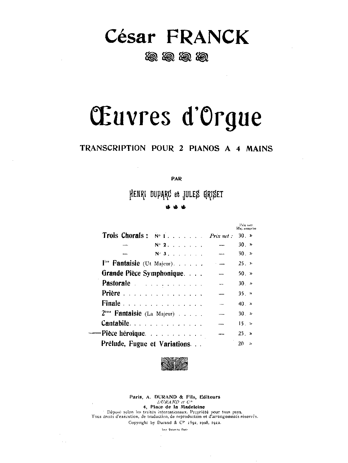 | Genre Categories | Pieces; For organ; Scores featuring the organ; |