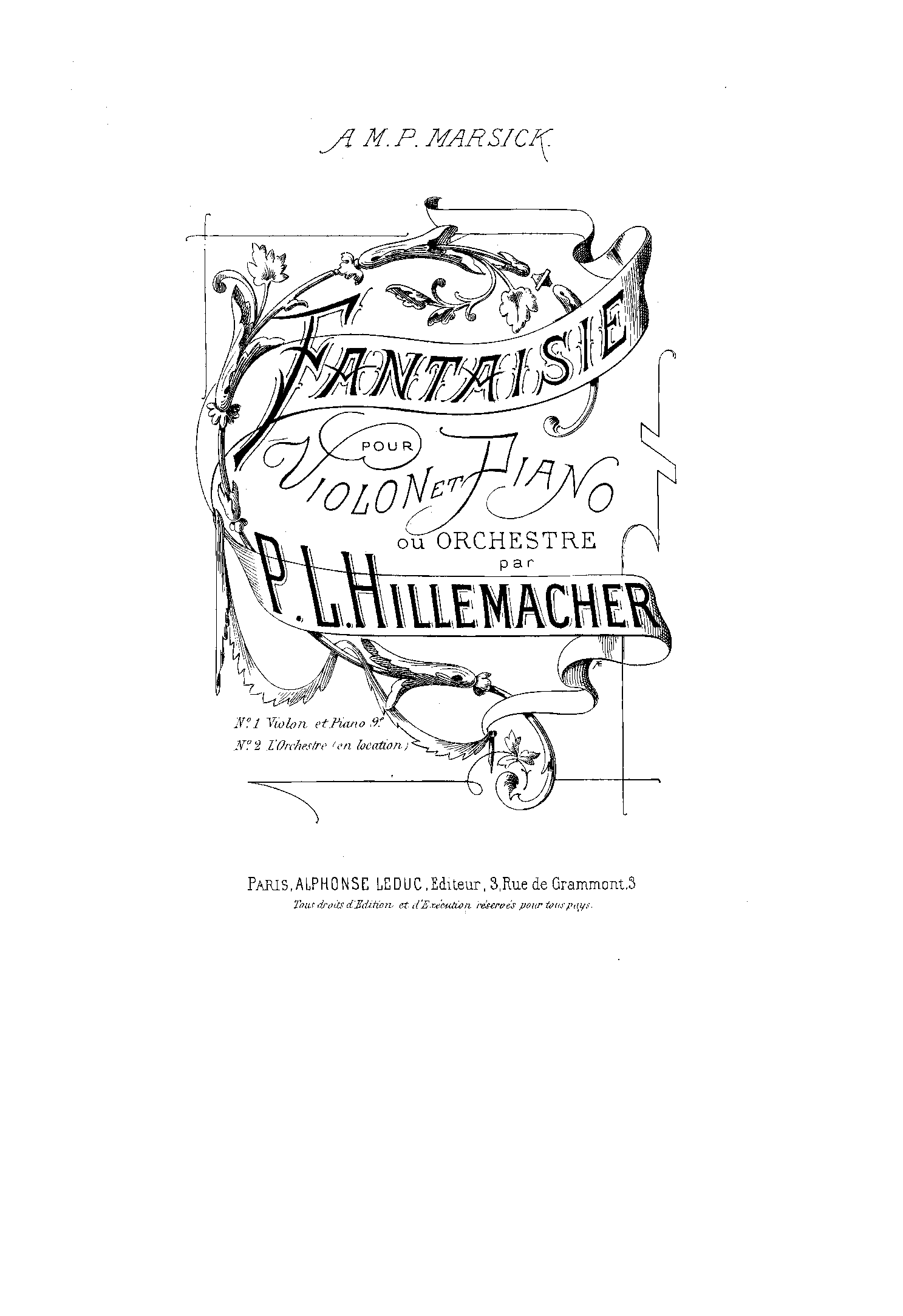| Dedication | A M. P. Marsick (Martin Pierre Marsick) |