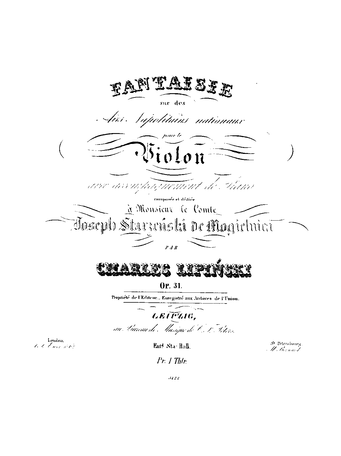 | Dedication | à Monsieur le Comte Joseph Starzeński de Mogielnica |