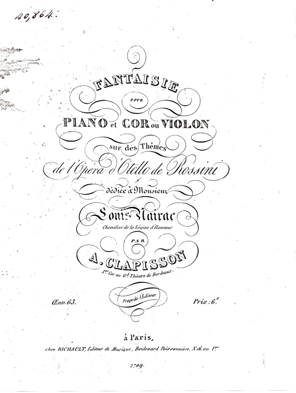 | Alternative. Title | Fantaisie pour piano et cor et ou violon sur des thêmes de l'Opéra d'Otello de Rossini |