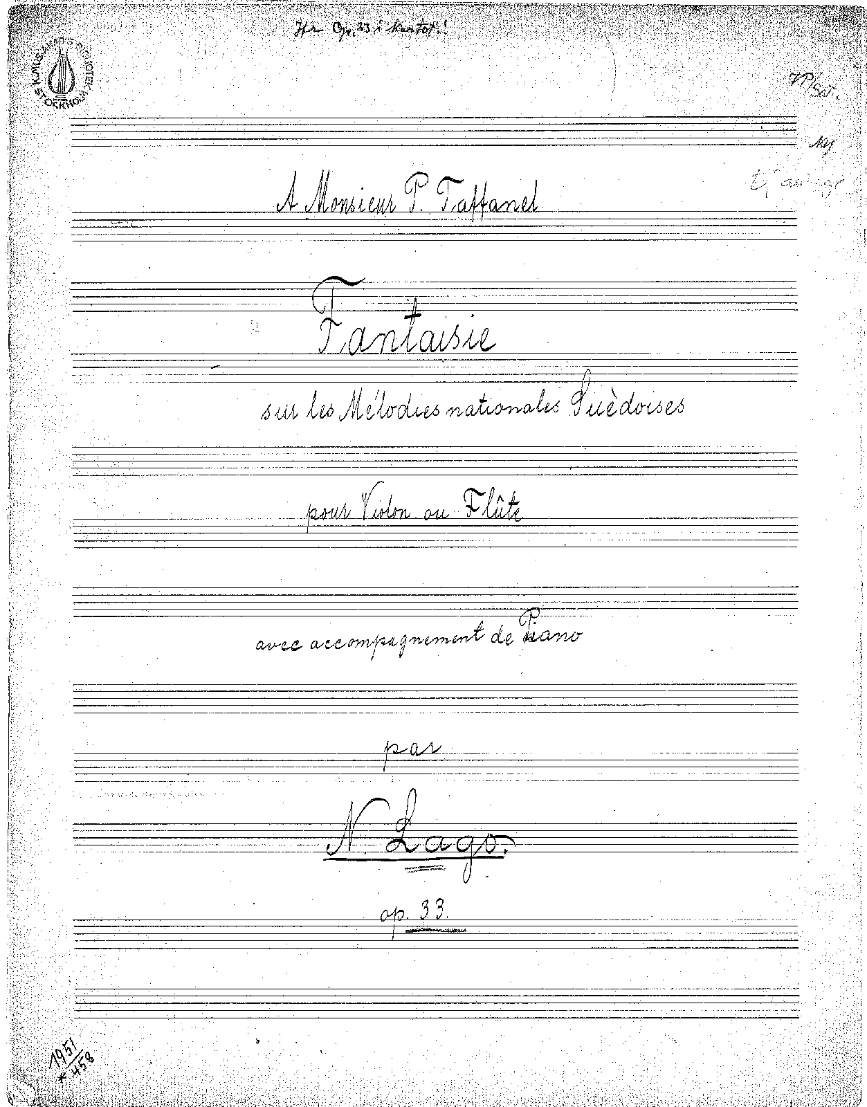 | Work Title | Fantaisie sur les mélodies nationale suédoises |